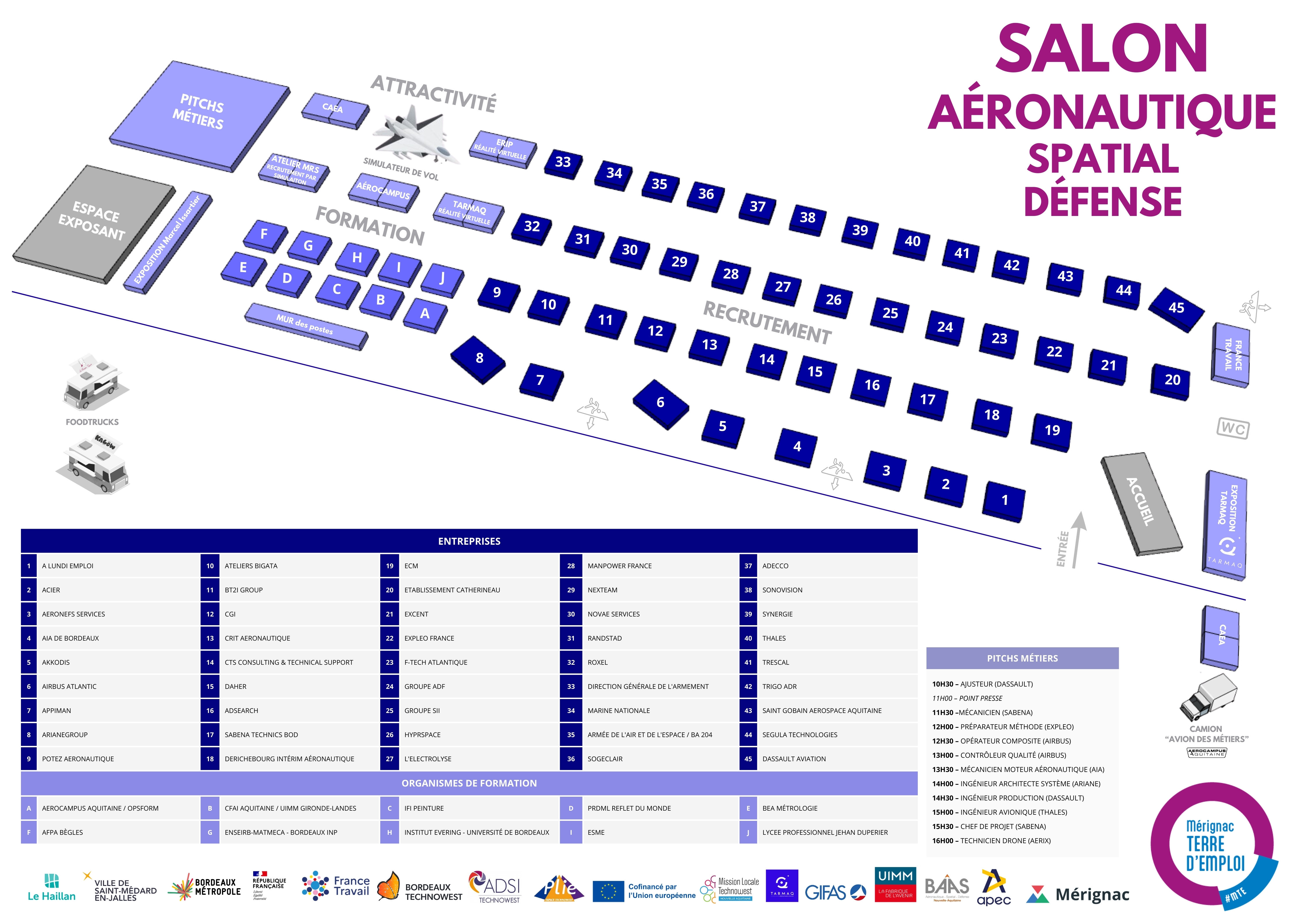 Tout au long de la journée, les visiteurs auront l’opportunité de rencontrer 46 entreprises, proposant plus de 1 500 offres d’emploi, ainsi que 10 organismes de formation. Afin de rendre l’expérience encore plus immersive, le salon proposera un espace dédié à l’attractivité des métiers, avec un simulateur de vol, des pitchs métiers en continu, des casques de réalité virtuelle, des ateliers pratiques et des expositions thématiques. Une zone de restauration avec des foodtrucks sera également accessible sur place.
