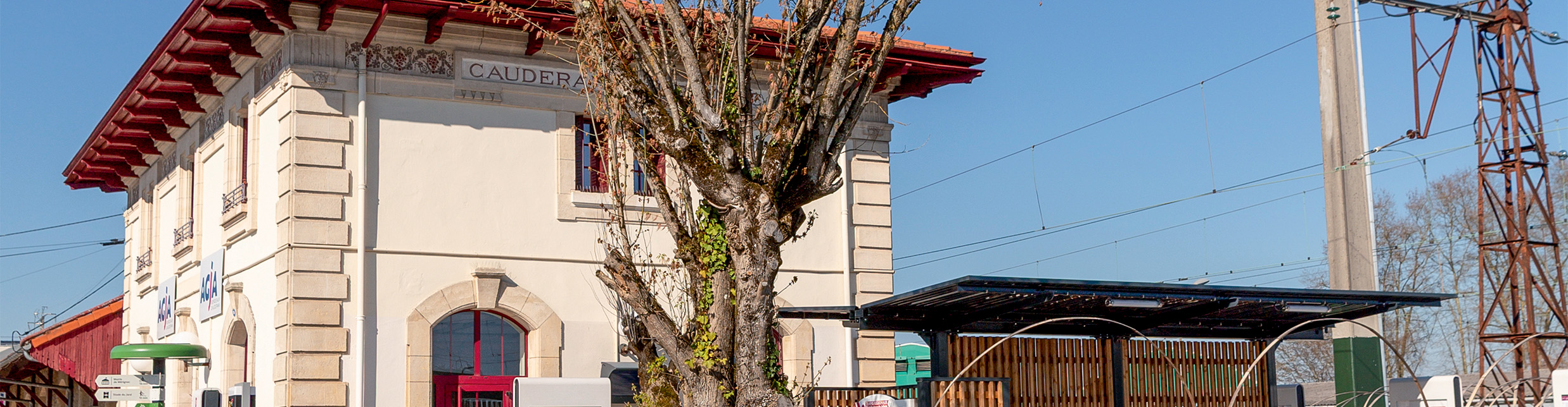 Fil d'Ariane Page d'accueil Mon quotidien Se déplacer Gare de Caudéran Mérignac Arlac Gare de Caudéran Mérignac Arlac Mise en service en 2010, la gare de Caudéran Mérignac Arlac a été depuis réorganisée et rénovée en halte ferroviaire moderne, alliant transport et loisirs. Le pôle d’échanges multimodal est opérationnel avec des quais rénovés, un parking repensé, des places en autopartage, des vélos en libre-service et un accès facilité aux transports en commun. Un pôle d’échanges multimodal Située dans le quartier d'Arlac, la gare dispose de deux voies et de deux quais et est desservie par les trains TER de Nouvelle-Aquitaine. Implantée sur la ligne qui relie Le Verdon à Bordeaux, la gare se situe entre les arrêts Cauderan-Mérignac et Pessac. Elle permet de rejoindre la ville de Bruges en une dizaine de minutes ou la ville de Macau en moins de 30 minutes. L'accès aux quais s'effectue par des escaliers et ascenseurs, situés de chaque côté du pont ferroviaire, ce qui permet un accès facilité aux personnes à la mobilité réduite.La gare est l'un des éléments du pôle multimodal qui comprend une station de tramway, deux arrêts de bus, un parc relais pour les voitures, ainsi qu’un espace de stationnement pour vélos.Le développement du RER métropolitain permettra également d’améliorer les liaisons entre Caudéran-Mérignac et les autres quartiers de Bordeaux.À proximité, les voyageurs peuvent découvrir la chartreuse de Foncastel, ancienne résidence de campagne des archevêques du XVIᵉ siècle ou la Fontaine d'Arlac. Gare de Caudéran Mérignac Arlac Gare SNCF, 10 rue Marcellin Berthelot 33700 Mérignac Lignes de train desservies à la gare : L42 (Bordeaux Saint-Jean - Le Verdon)F42 (Macau - Pessac)Consulter les horaires des trains en temps réel Services sur placeDistributeur de titres de transport TER sur placeAscenseur pour les PMRParc-Relais pour les voitures et vélosStation Le Vélo par TBMTransports en commun autour de la gare :Tram : Ligne A et F - arrêt "Fontaine d'Arlac"Bus : lignes 74 et 78 - arrêt "Fontaine d'Arlac"